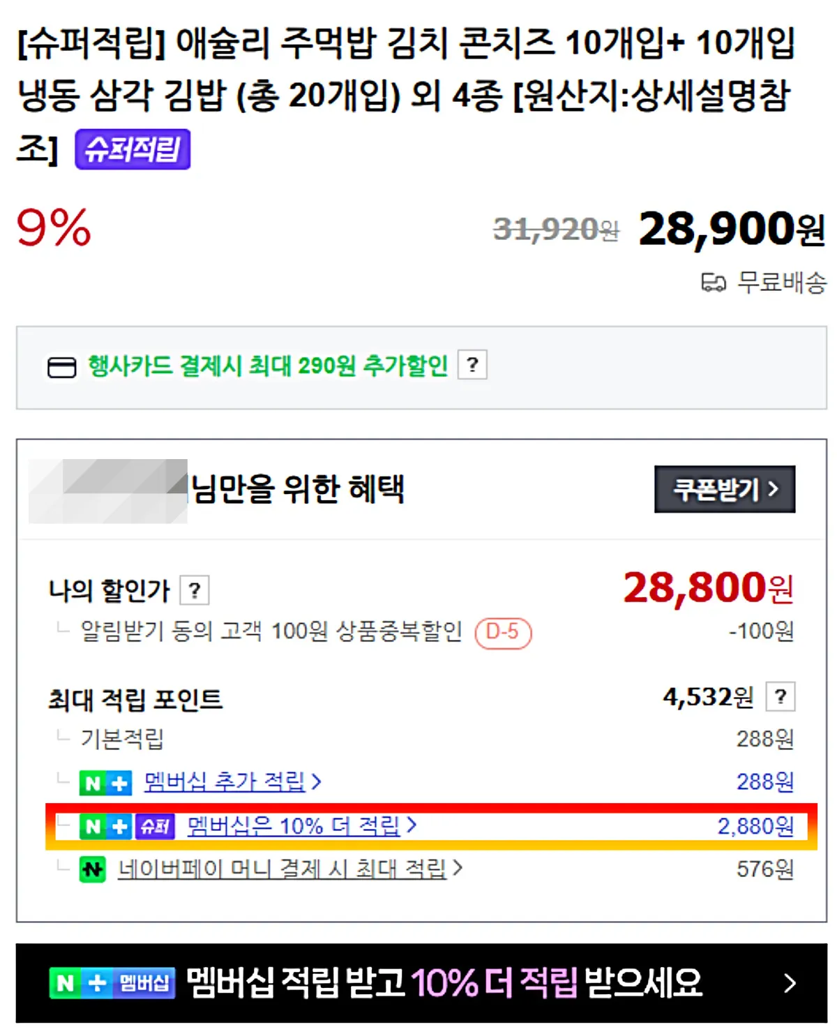 네이버플러스 멤버십은 네이버에서 쇼핑을 자주 하는 분들이 가입하면 혜택을 받을 것 같습니다. 적립되는 포인트까지 계산하면 다른 사이트보다 훨씬 더 저렴하게 구매할 수 있습니다.