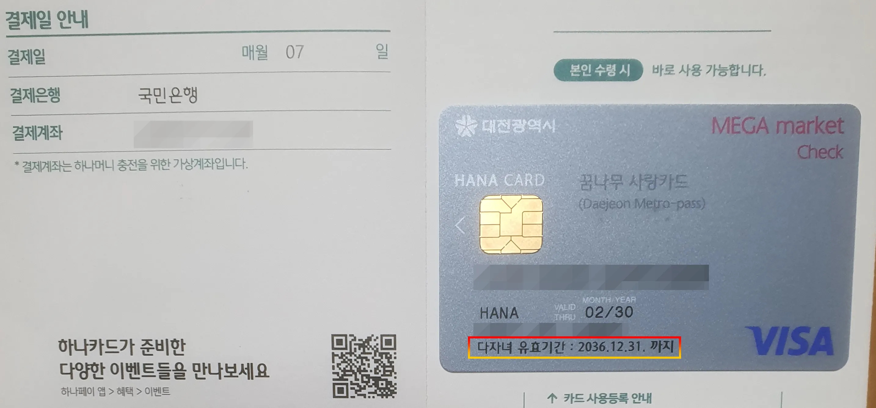 카드를 보면 하단에 다자녀 유효기간이 표시가 됩니다. 다자녀 우대기간은 '막내가 만 19세가 되는 해 1월 1일부터 중단'이라고 된 내용과 일치하네요.