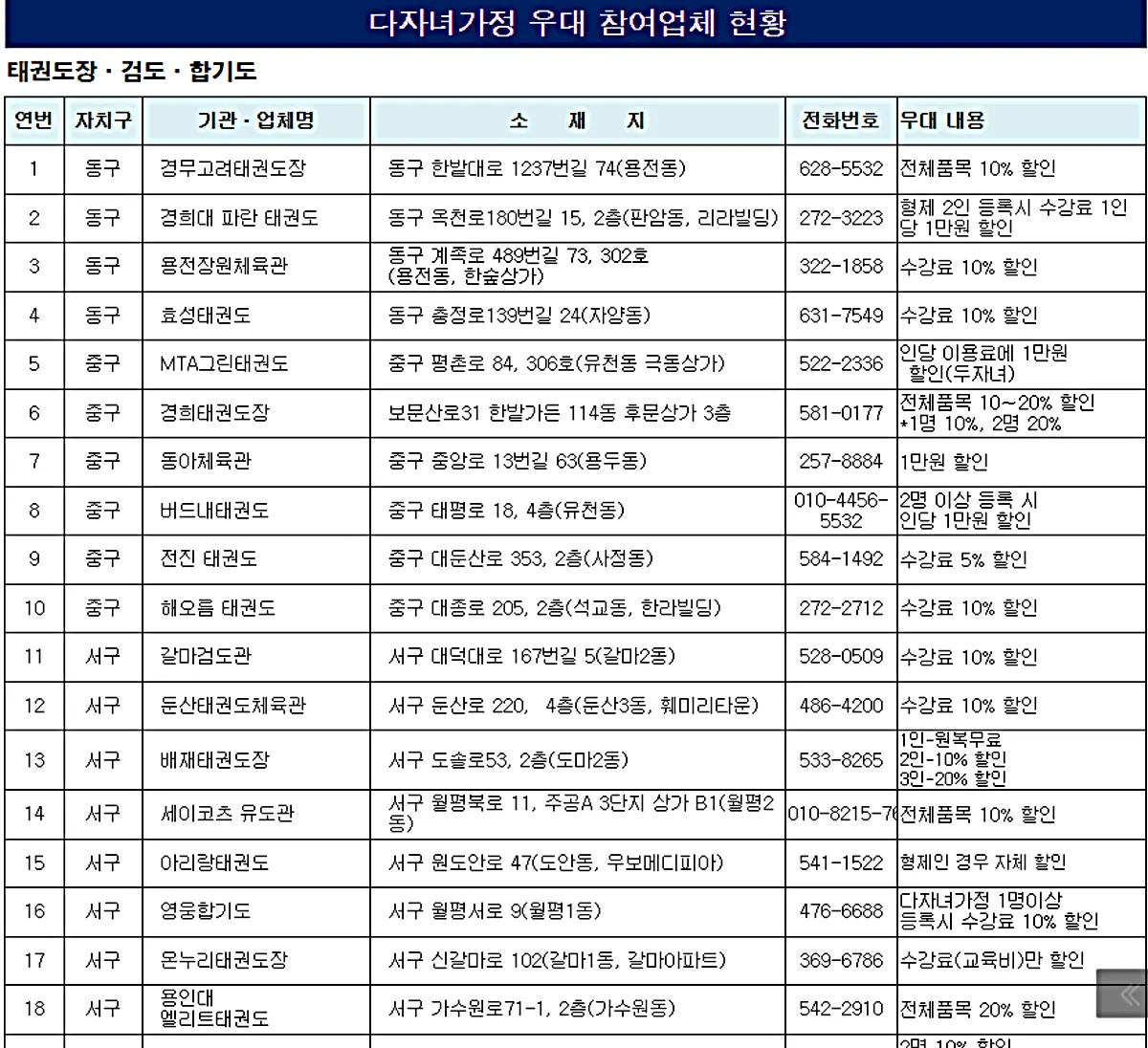 저희 둘째가 올해부터 태권도 학원을 다니게 되었는데, 마침 아이가 다니는 학원이 "다자녀 우대제 참여업체"이더라고요.