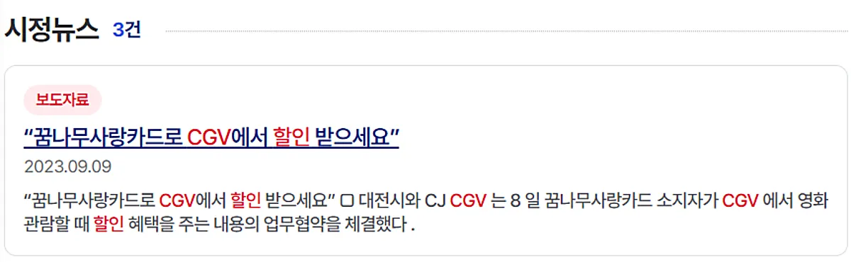 꿈나무사랑카드를 발급받으면 또 다른 혜택이 CGV영화관 할인도 있었네요.