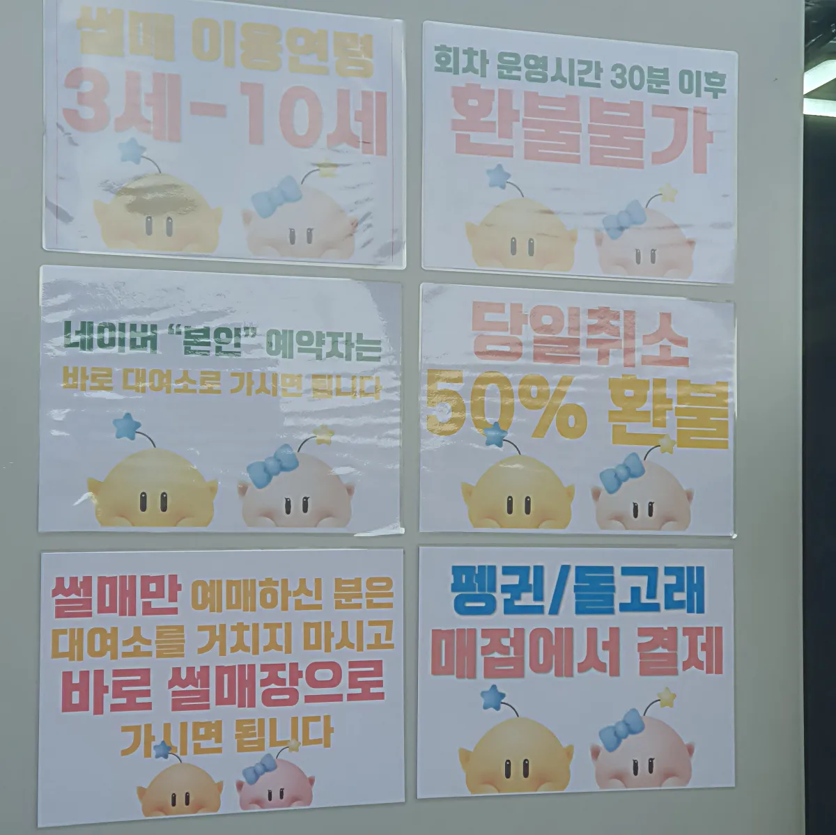 - 펭귄/돌고래(스케이트 탈 때 붙잡고 타는 도구)는 대여소가 아닌, 매점에서 결제