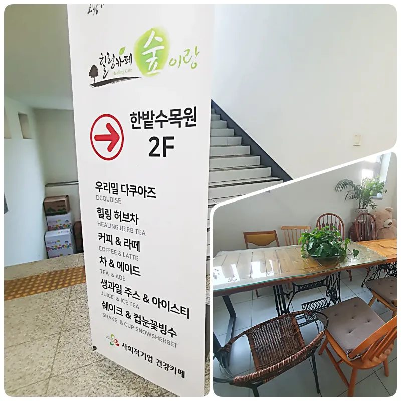 잠시 휴식이 가능한 휴게공간과 2층 카페
