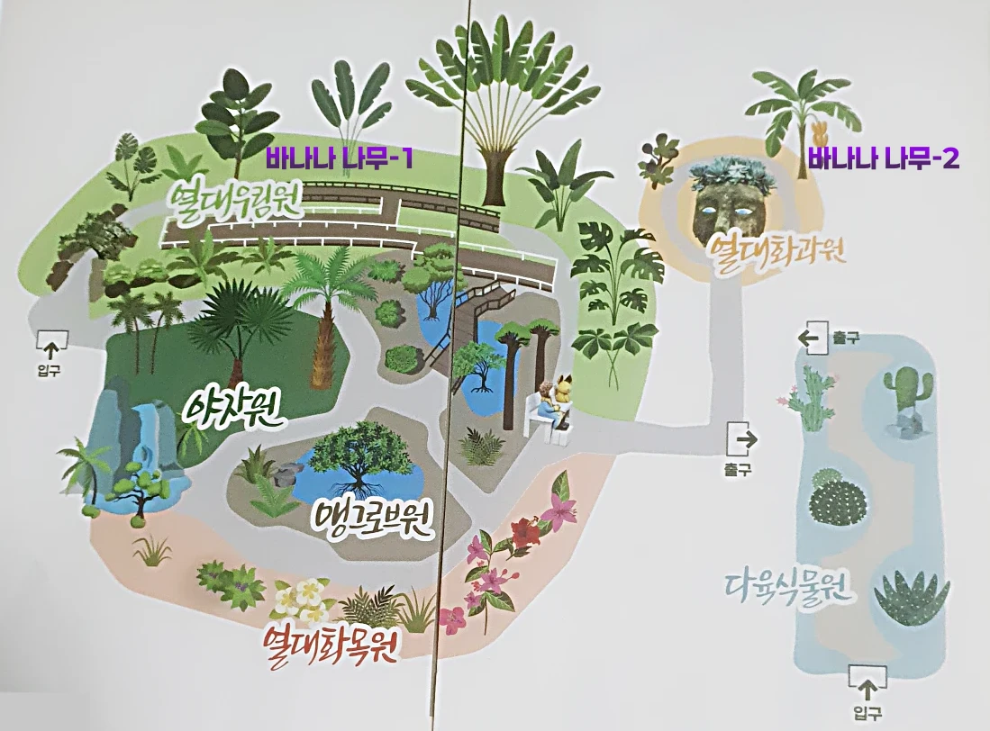 열대식물원은 규모가 크지 않아서 약 20분이면 한 바퀴를 돌 수 있어요. 다육원까지 더하면 40분 정도!