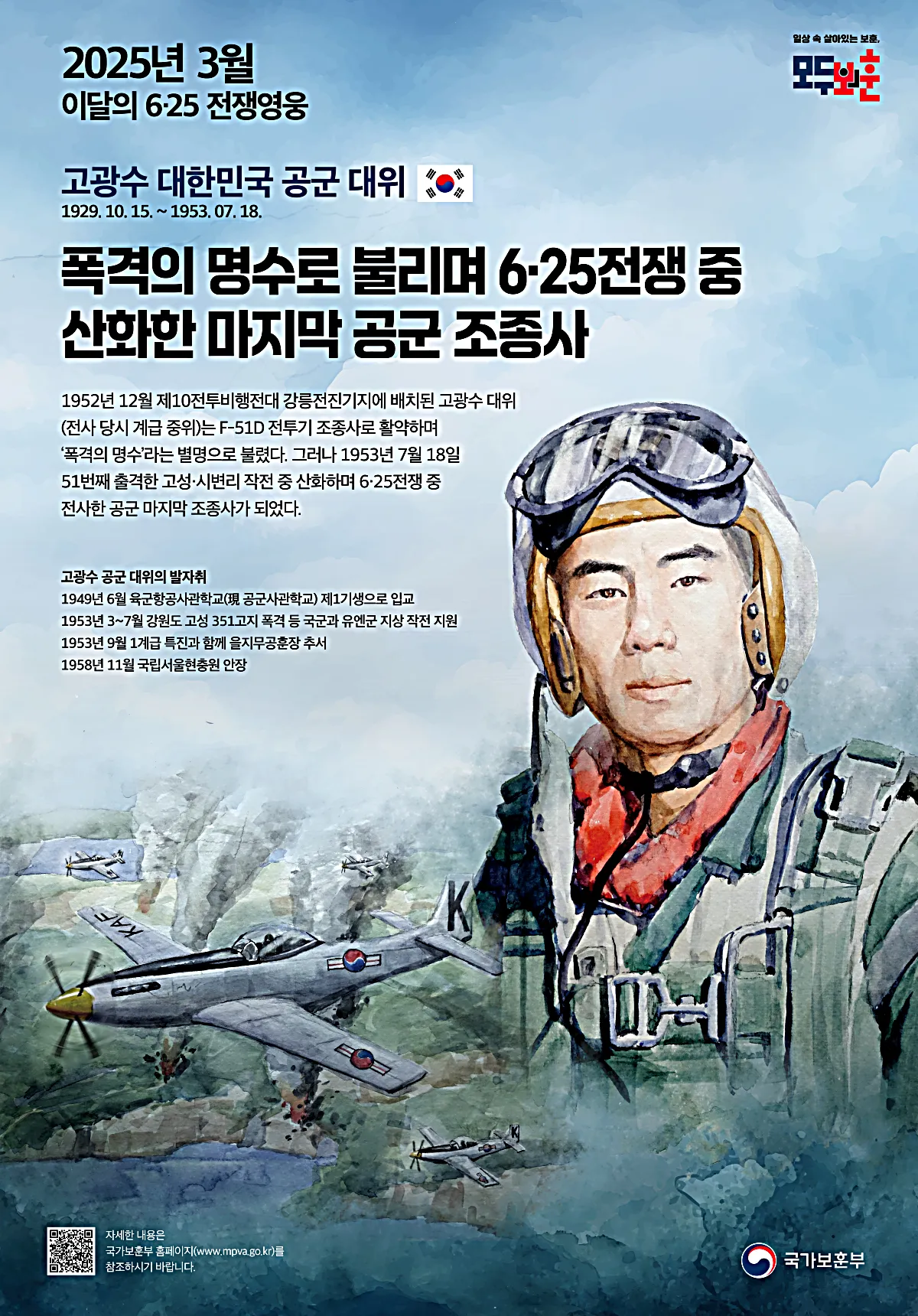 1952년 12월 제10 전투비행전대 강릉전진기지에 배치된 고광수 대위 (전사 당시 계급 중의)는 F-51D 전투기 조종사로 활약하며 '폭격의 명수'라는 별명으로 불렸다.