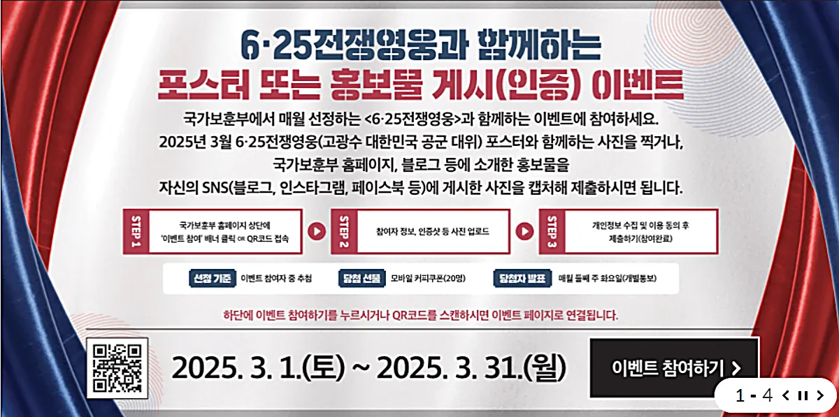 며칠 전 국가보훈부 홈페이지를 보다가, 6.25 전쟁영웅과 함께하는 홍보 이벤트 참여가 눈에 들어왔습니다.