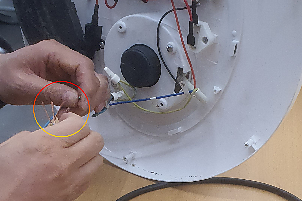 눈썰미가 좋으신 이사님이 열풍기 본체에서 코드가 나오는 부분을 의심했습니다. 열풍기를 너무 세게 당기면서 안에서 얇은 구리선이 몇 가닥 끊어져 문제가 되는 것 같다고 합리적인 의심을 하셨습니다.