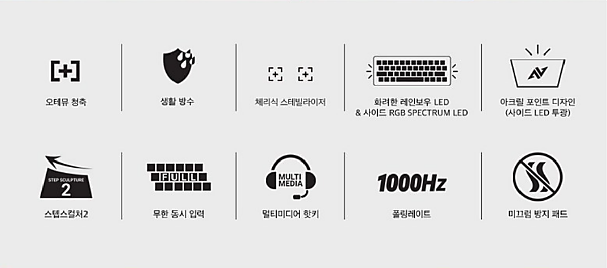 | LED EFFECT | 전면 백라이트, 서라운드 사이드 라이트 (커스텀 가능) | |