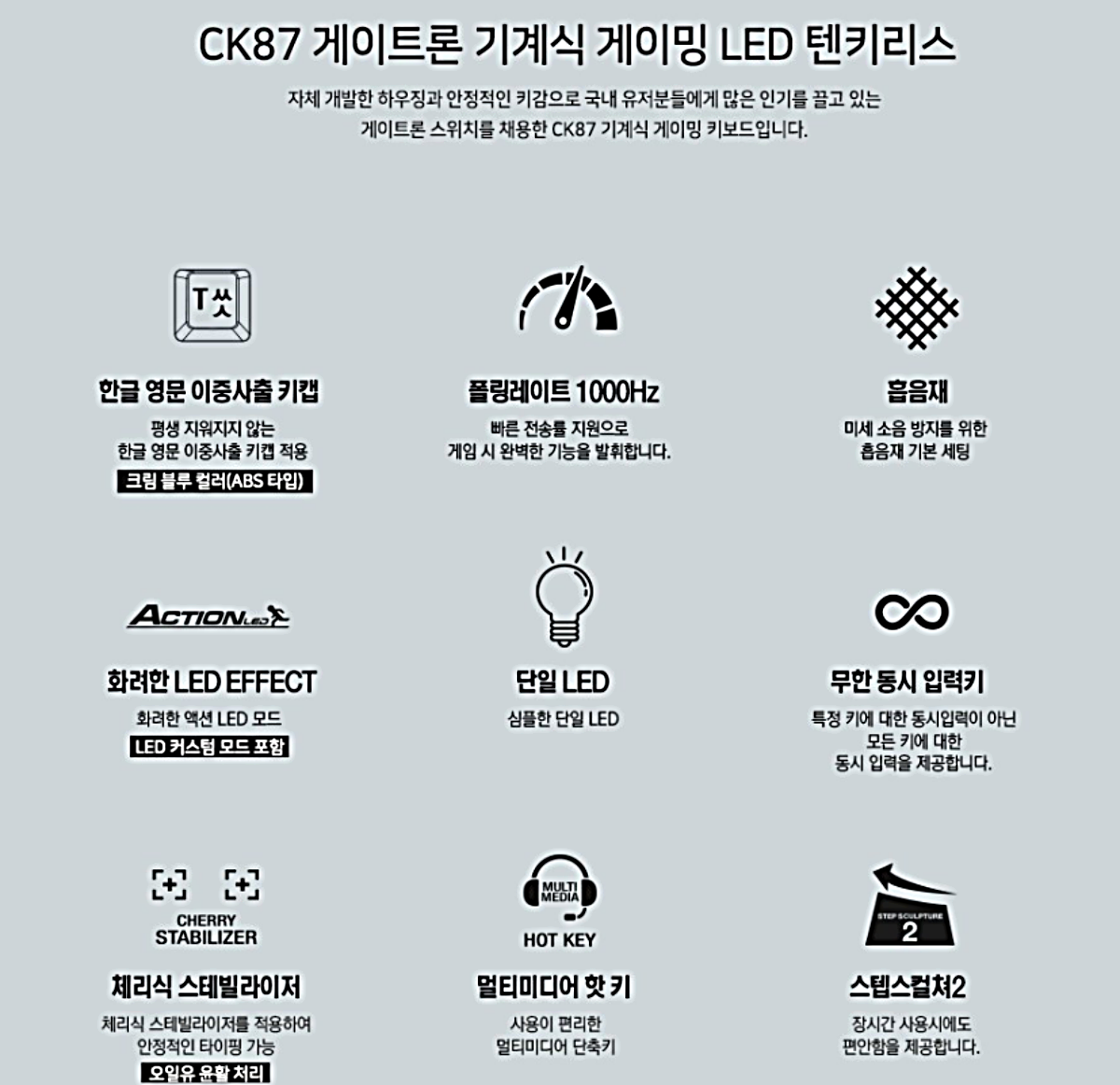 | COX CK87 게이트론 LED 게이밍 기계식 키보드 | |
