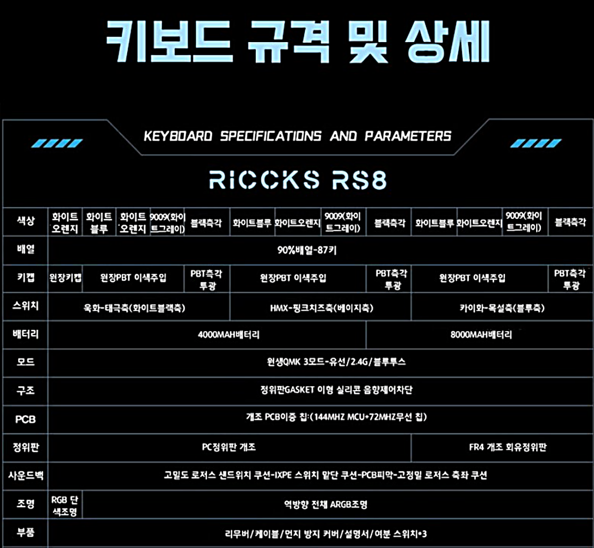 | 가격 | COX CK87 | 앱코 K660 | Riccks RS8 |