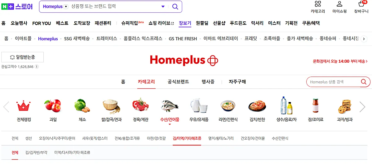 네이버 장보기와 홈플러스 인터넷몰 가격비교