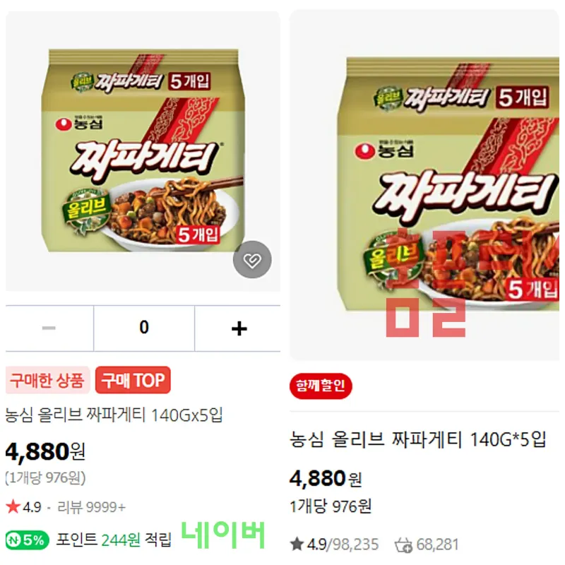 하지만, 네이버는 구매하면 포인트가 5%씩 적립되니깐, 네이버 장보기에서 구매하는 게 훨씬 더 합리적이라 생각했습니다.
