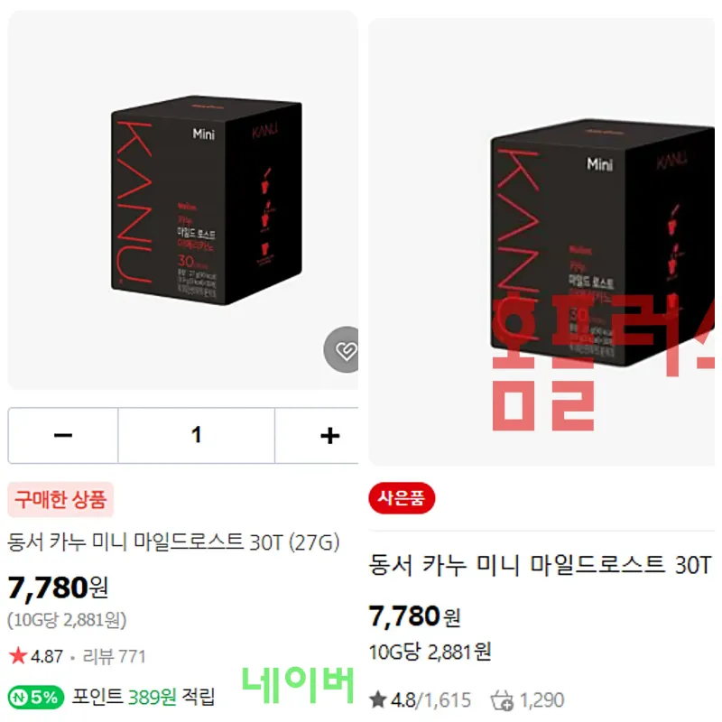 동일한 합산 가격에서  네이버 장보기에서는 5000원 할인 쿠폰과 스토어 할인이 더 있어 결국, 동일한 가격은 아니라 1만 원 정도 할인되는 셈이었습니다.